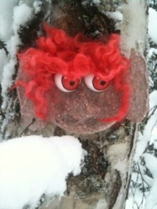 Äldsta dottern (8 år) hade födelsekalas förra helgen. Då gjorde vi bl.a. en tipsrunda på temat djur längs ett skoterspår i skogen vid vårt hus. För att göra det lite roligare funderade jag på om vi inte kunde tillverka några troll att sätta upp i skogen också. Efter en del tankeverksamhet blev valet av material denna gång papier mache.