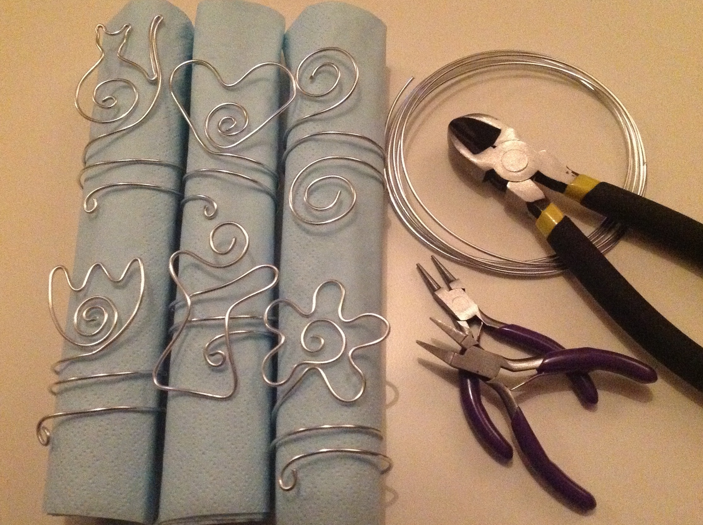 Av lite metalltråd och en tång kan man, som sagt, göra mycket. Här kommer ett exempel på några servettringar.