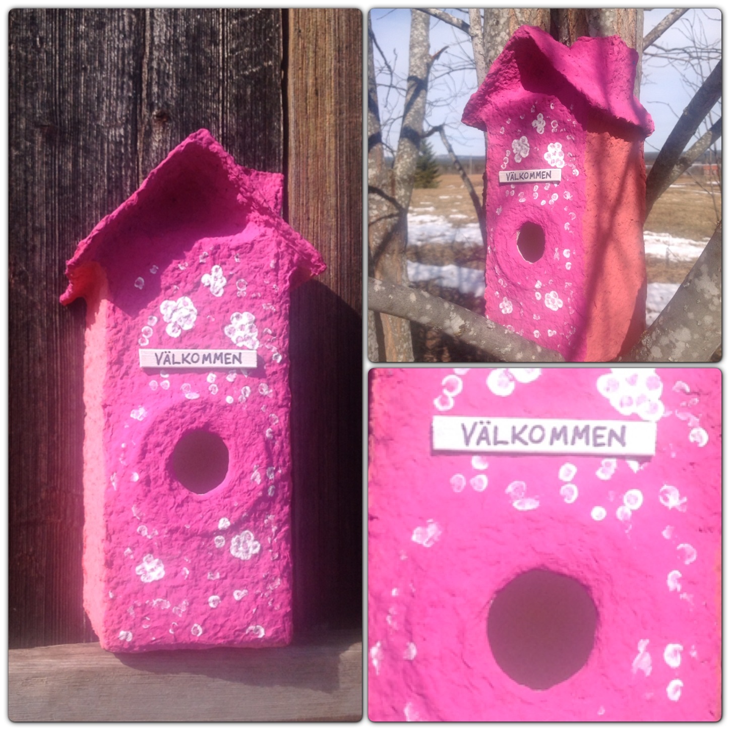 Även döttrarna har fått göra varsin fågelholk i papier maché. En mer detaljerad beskrivning av hur vi gjorde finns i tidigare inlägg (Fågelholk av papier maché och Fågelholk av papier maché – del 2), men jag måste ju visa upp barnens alster också.