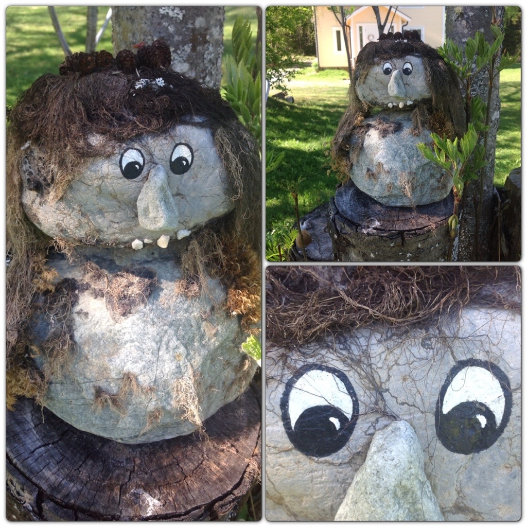 Sen har vi förstås också ett stentroll. Även denna har stått ute i flera år. Det mesta av skägget har lossnat och det är kanske dags att bättra på med lite mer hår också. Men med åldern kanske även riktiga troll blir lite tunnhåriga…?