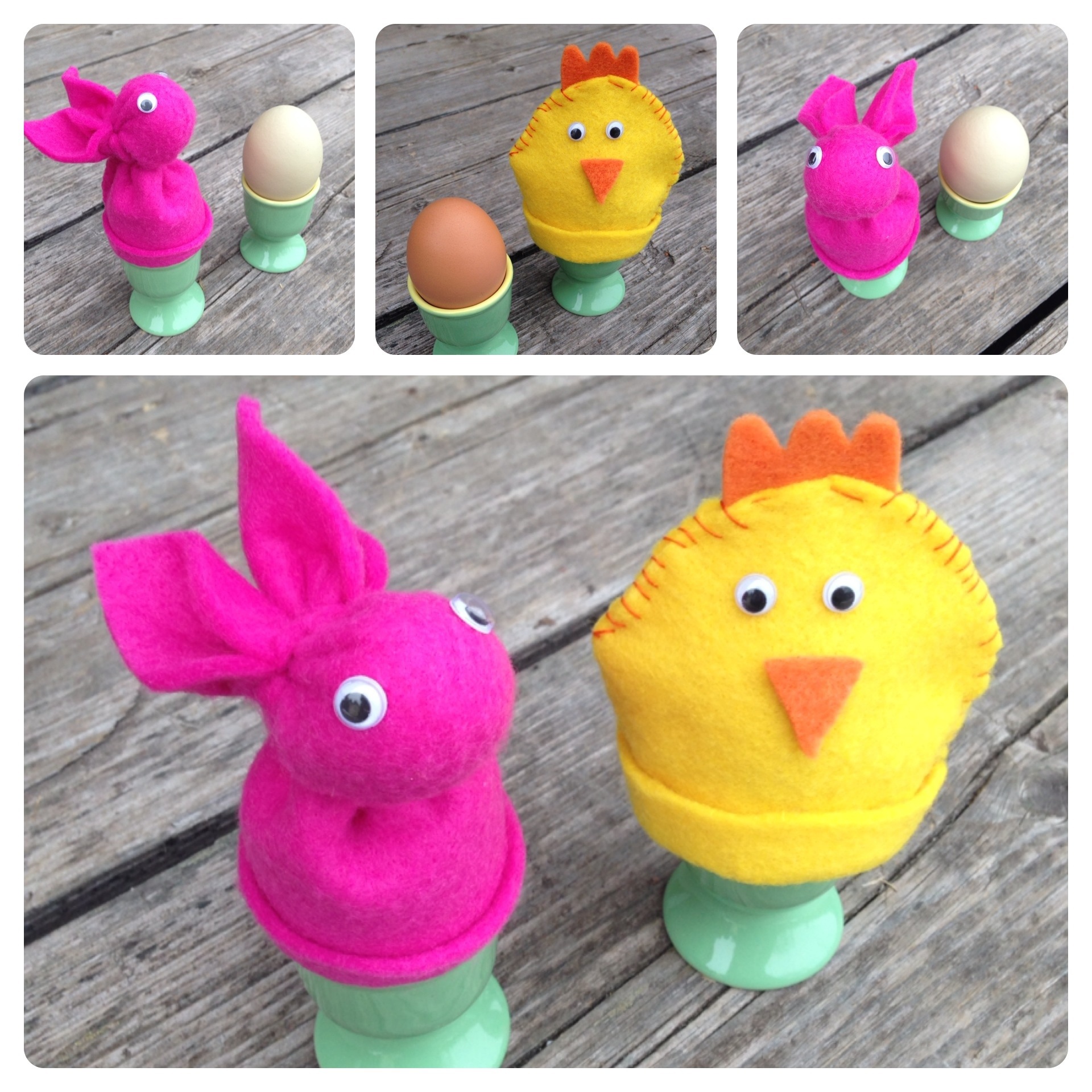 Vårt påsklov har inte börjat än, vilket är lite frustrerande när man gärna vill hinna pyssla lite innan påsk. Det är ju trots allt inte riktigt lika kul att göra påskkaniner och kycklingar veckan efter påskhelgen… Men ikväll fick barnen åtminstone göra varsin äggvärmare av filt.