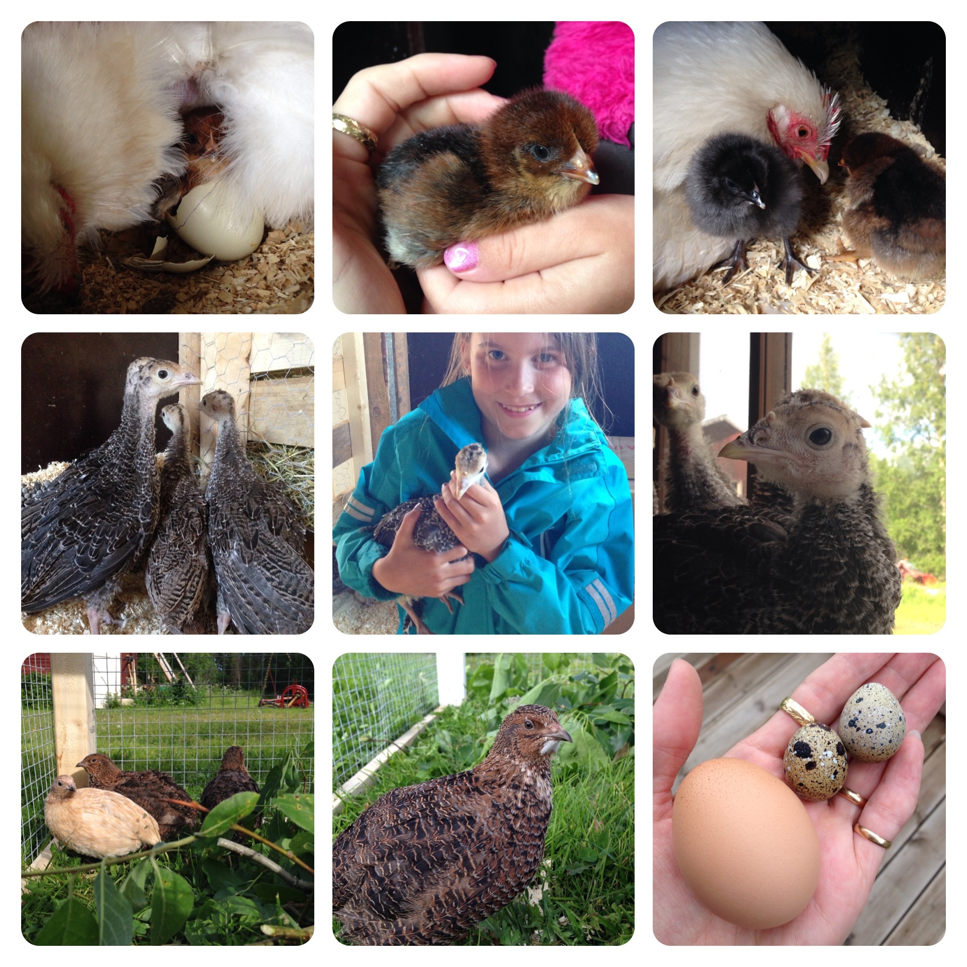 Vi har en flock höns på gården och bland dessa finns två hönor som gärna ruvar fram några kycklingar varje år. Nykläckta kycklingar är ju vansinnigt söta. I år skaffade vi även några kalkonkycklingar och vaktelkycklingar. Riktigt trevliga djur de med och vaktelägg är inte bara små och söta, de är också fantastiskt goda.