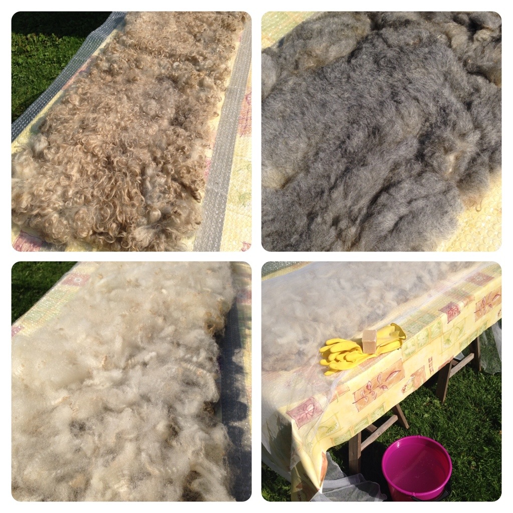 I somras tog jag mig en eftermiddag för att experimentera lite med otvättade lockar från vårens klippning. Vinterullen är lite tussigare, smutsigare och skräpigare än sommarullen – med andra ord perfekt att experimentera med, särskilt utomhus en solig sommardag.