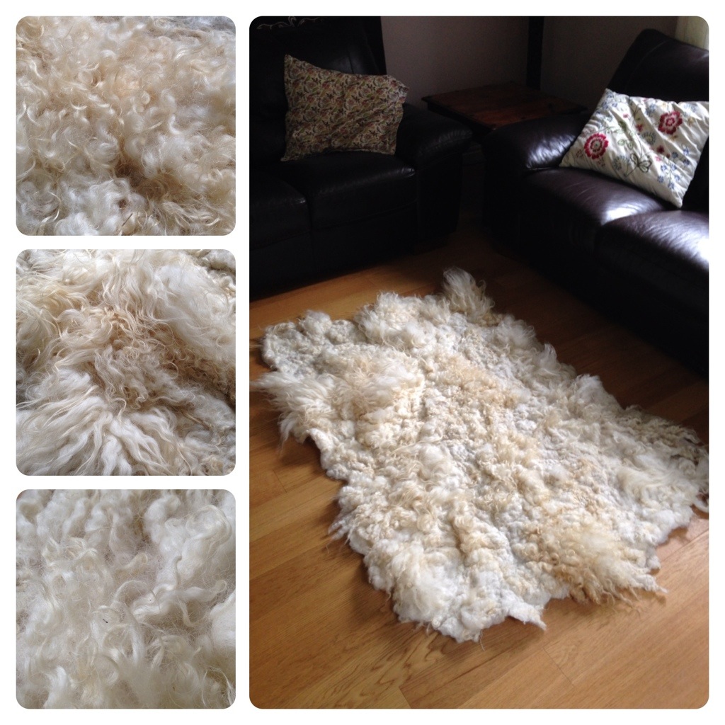 I am really pleased with the result. The wool felted into the fabric (which gives the rug extra strength) and the mix of straight and curly locks, along with parts that are more tightly felted, give it character. Now I can only hope that our youngest dog stops chewing on everything before winter arrives so that I dare keep the rug on the floor. Or else, I may have to make a new one next year. 😉