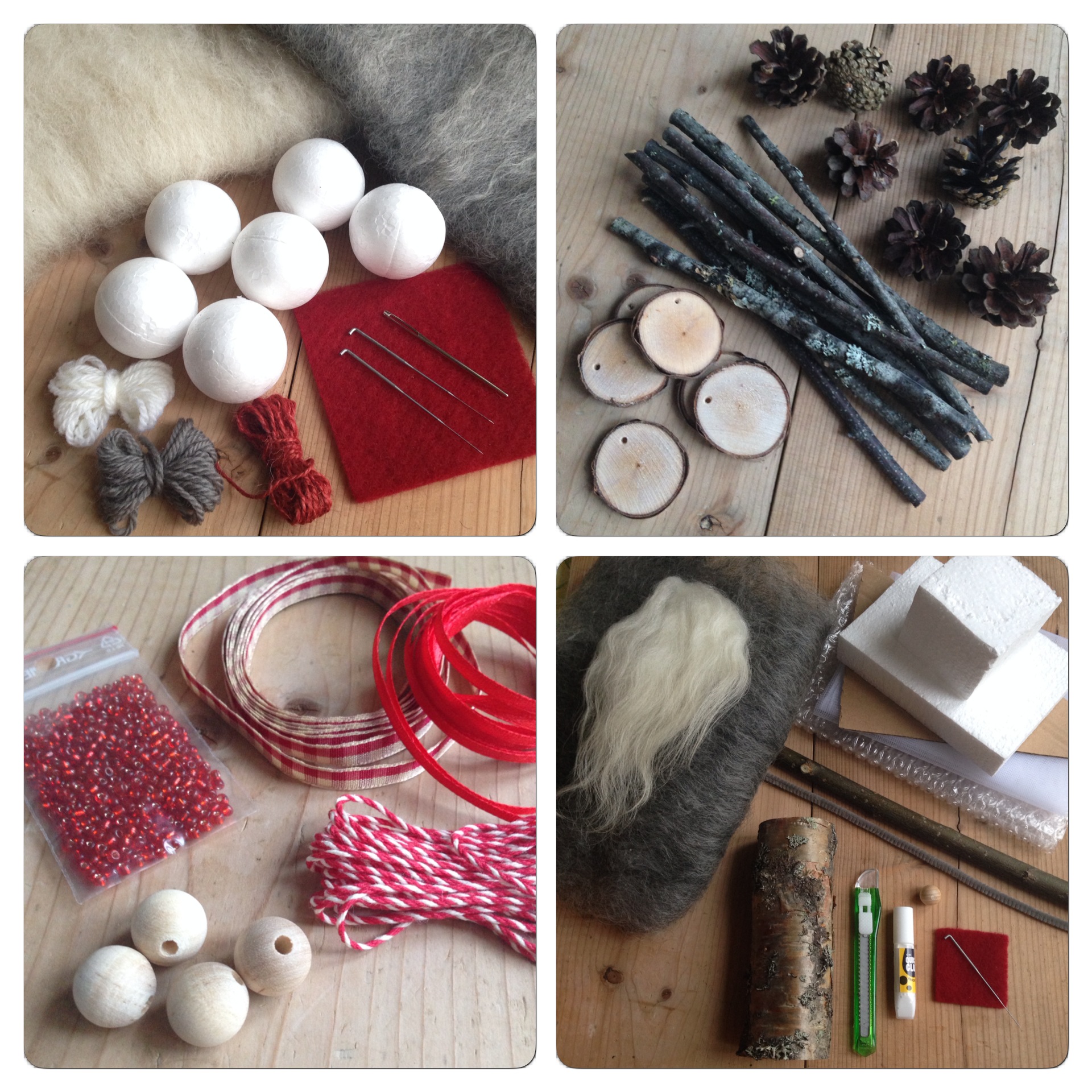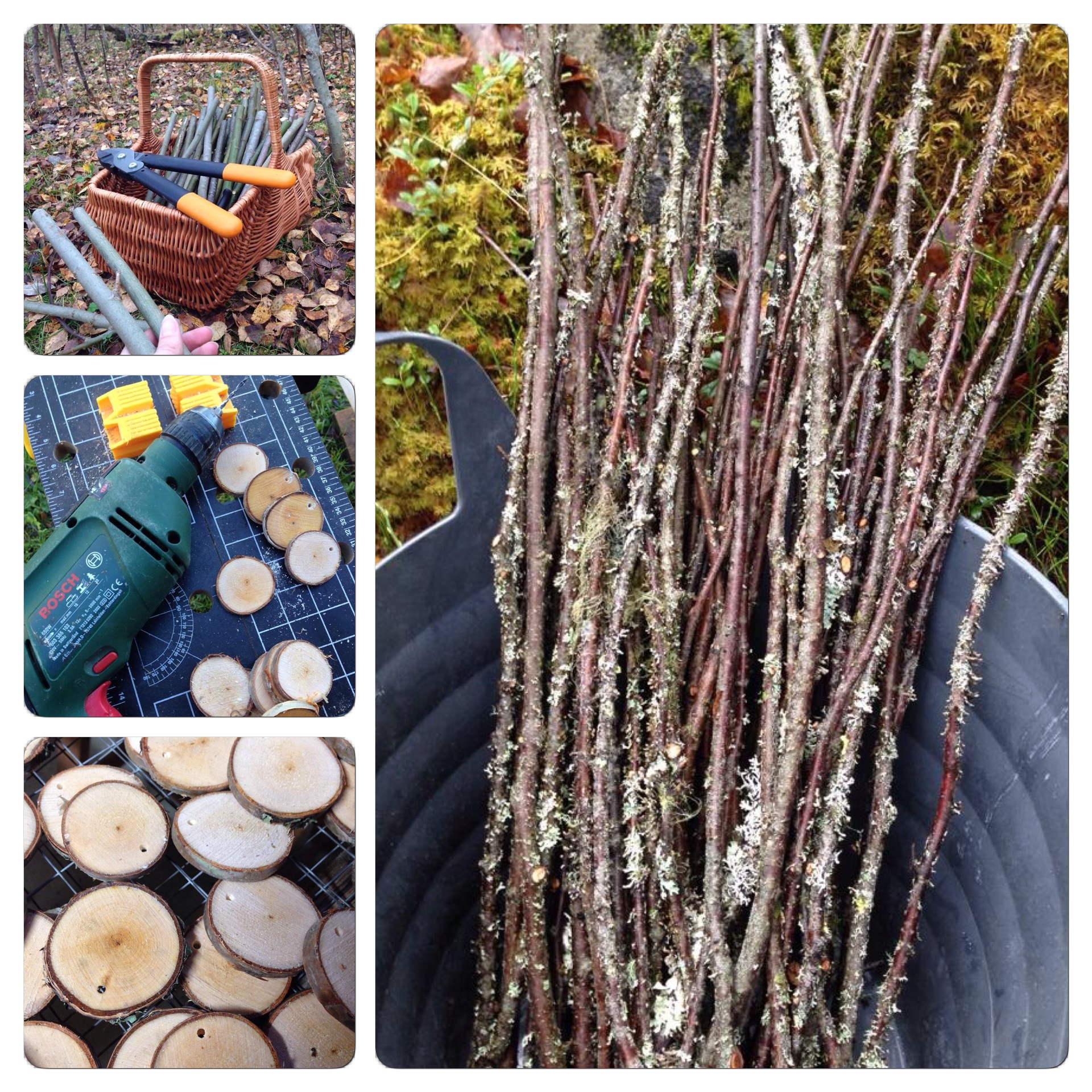 Utöver det så har jag så klart också lagt en hel del tid på att samla ihop och bearbeta denna ”ull och andra naturmaterial” som ska ingå i paketen. Jag har klippt, sågat, borrat och torkat träbitar i allehanda former. Och jag har sorterat, rensat, tvättat, torkat och kardat ull. Lite slitsamt emellanåt, men roligt. Och barnen har såklart hjälpt till med produktutvecklingen – och sjungit julsånger sedan början av oktober.