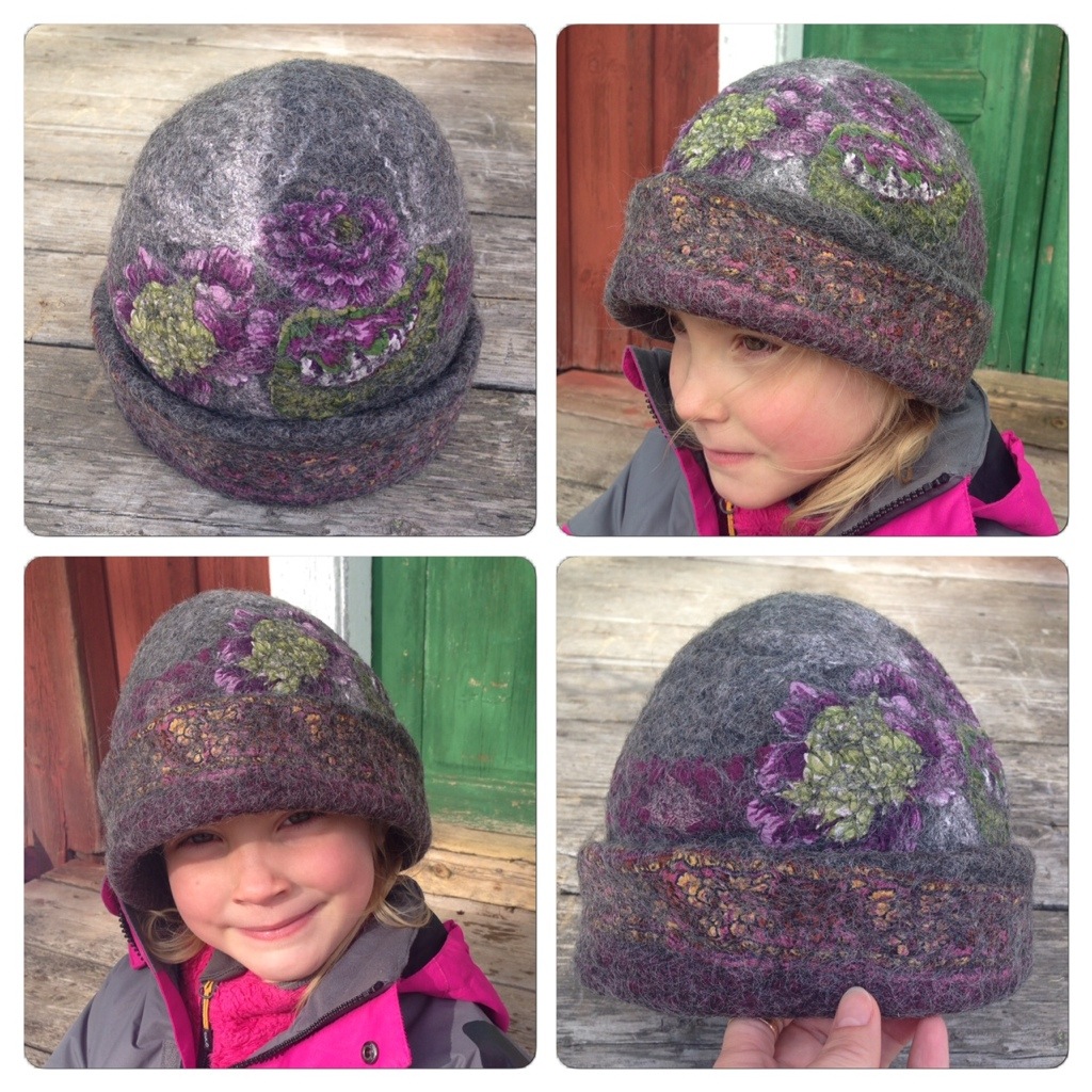 Men så provade jag att raka den håriga ytan, med en vanlig rakhyvel. Och då kom tyget fram igen. 🙂 Som vanligt ser hatten bättre ut på min dotter än på mig, även om den är något för stor för henne. Men hon vill säkert ha ett foder i den så att den inte kliar i pannan. Då blir den nog lagom i storlek till henne och så jag får väl tova en ny åt mig själv. 20150410-142733.jpg