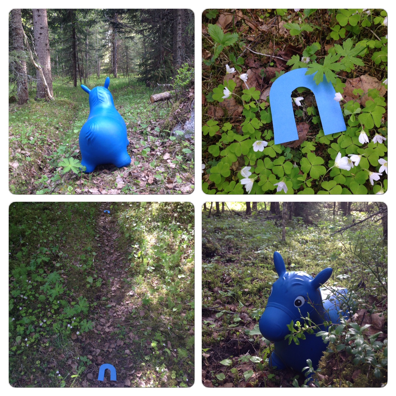 We also had the almost obligatory treasure hunt. Written clues can be difficult for 6-year-olds, so instead we made up a story about our blue donkey that had run off into the forest with the treasure. To find the donkey, they had to follow the blue hoof tracks (cut from blue paper) the donkey had left behind. When you are six, a story like that makes sense. 😉