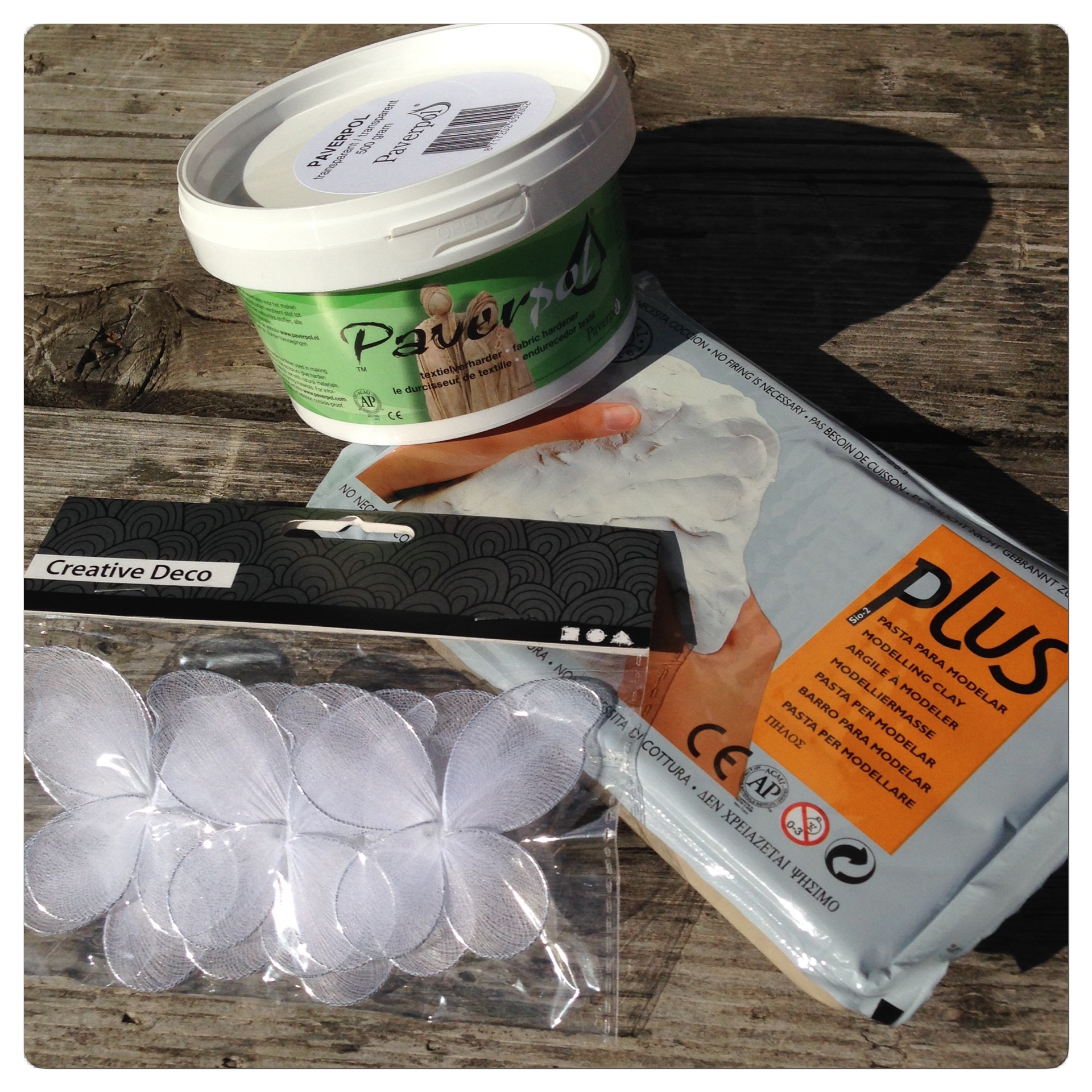 When you have created a fairy garden, you can always hope that real fairies move in. Or you can make your own. We chose the latter and I had a rough idea of how to go about it. For this project I got Paverpol, clay and wings from Creativ Company. I figured that with pretty wings, we should be able to make something fairylike. And if not, we could make simple butterflies.