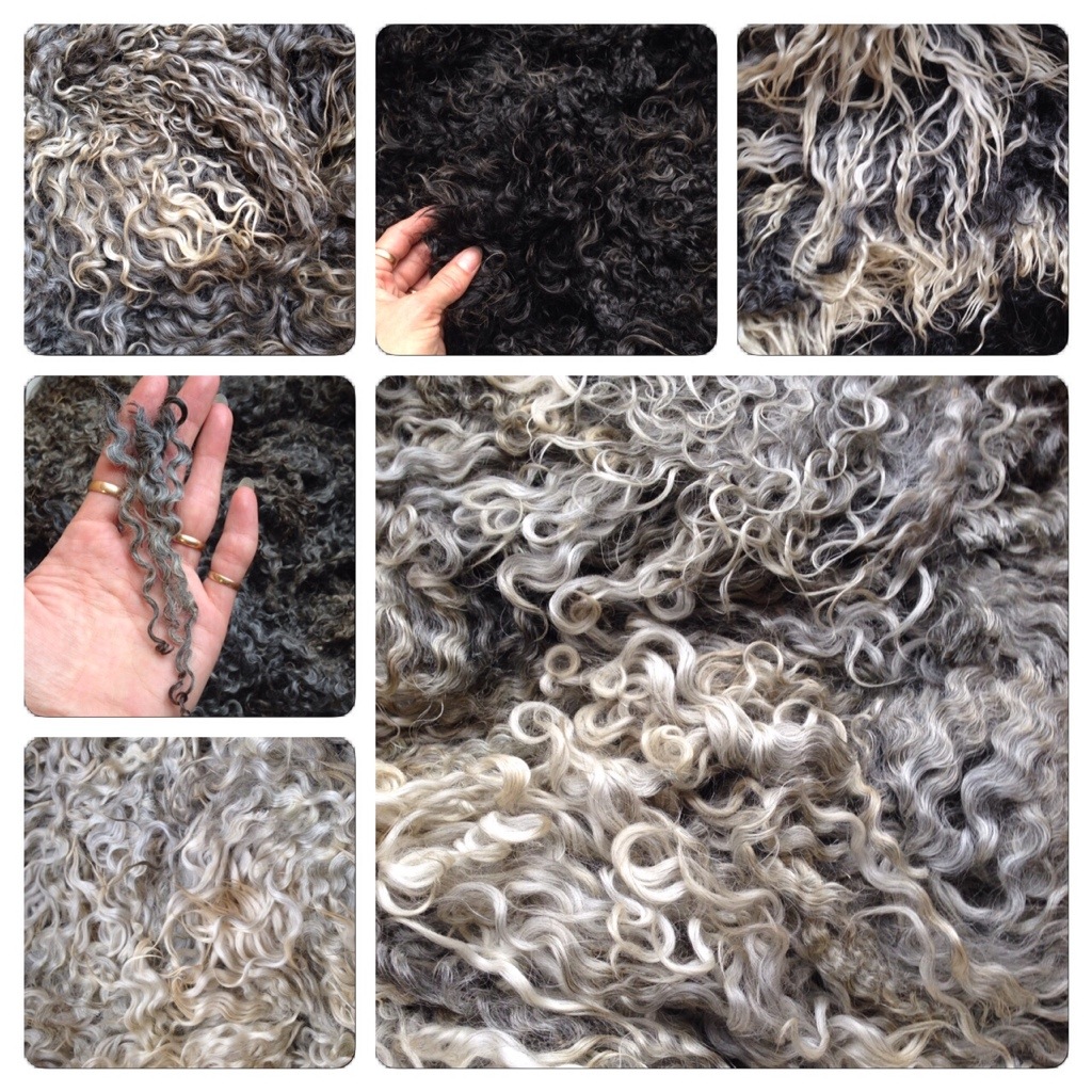 Gotlandsfårens lockar är otroligt vackra. Igår hämtade jag två stora säckar gotlandsull från en gård i grannbyn och jag skulle kunna sitta länge och bara titta på rikedomen. Flera fällar var jämngråa, andra väldigt ljusgråa, några mörka, nästan svarta och några mörka i botten med solblekta toppar. Just de sistnämnda tycker jag är riktigt läckra. Storleken på locken varierar också mellan individer, och beroende på om ullen kommer från ett lamm eller ett vuxet djur. Varje fäll har sin egen karaktär och charm.