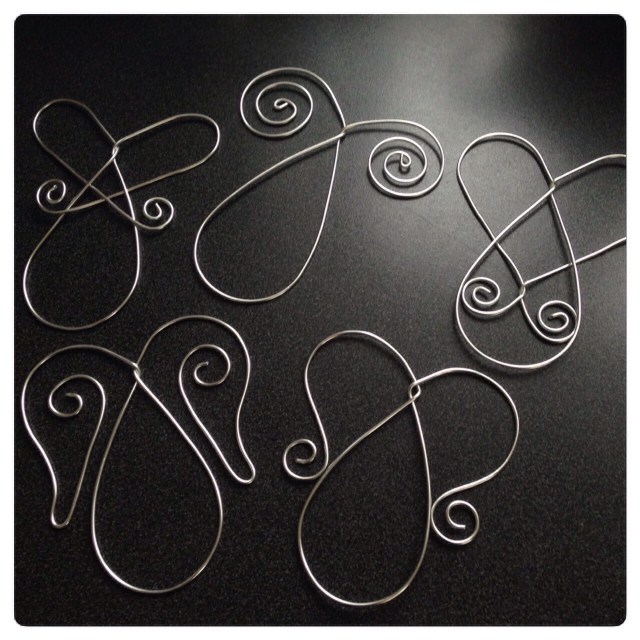 Efter lite klurande över hur jag skulle konstruera resten av ängeln, bestämde jag mig för att böja till lite olika kroppar med vingar av metalltråd. Här använde jag aluminiumtråd, som är väldigt mjuk och lätt att böja. Men det går givetvis också att använda vanlig najtråd, eller vad man nu råkar ha till hands.