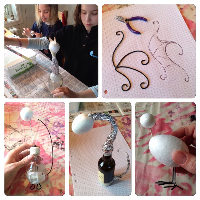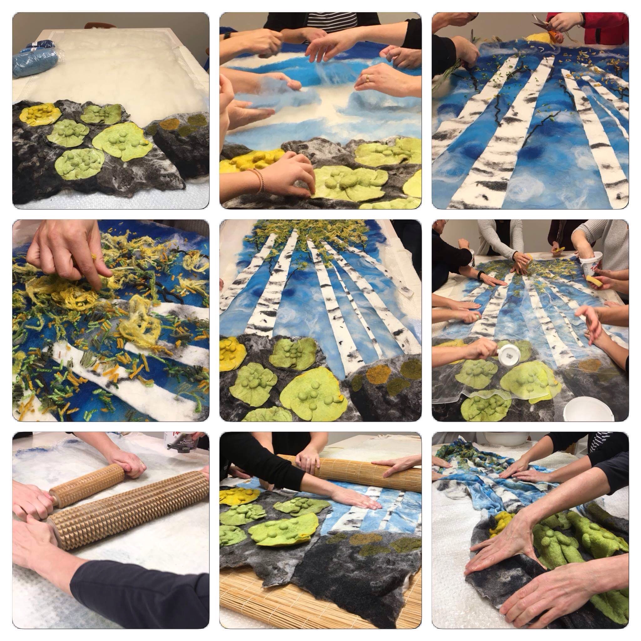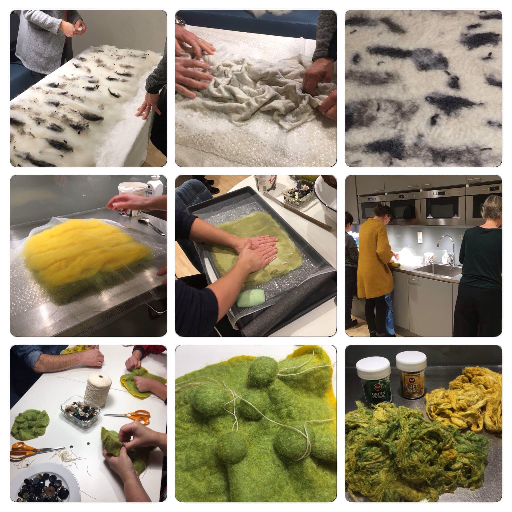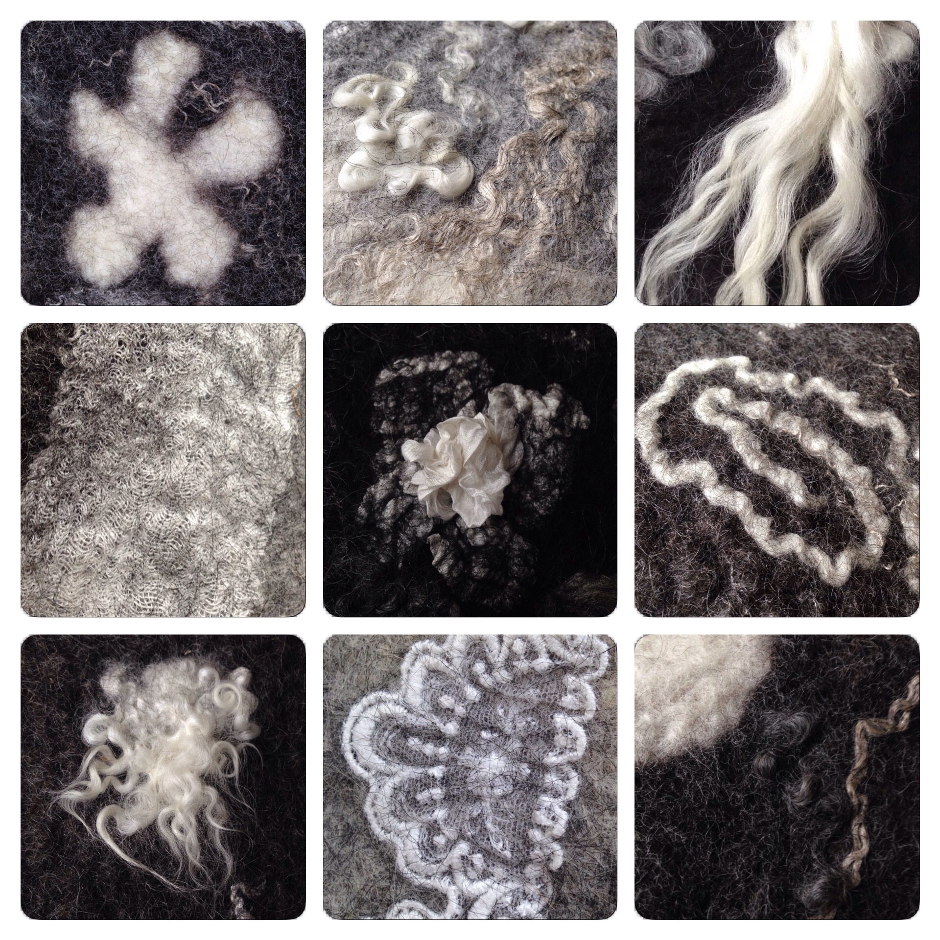 On a third, we laid out a thick cotton string between the wool and the silk fabric. I left the string in place almost until the end of the felting process, before I pulled them out.