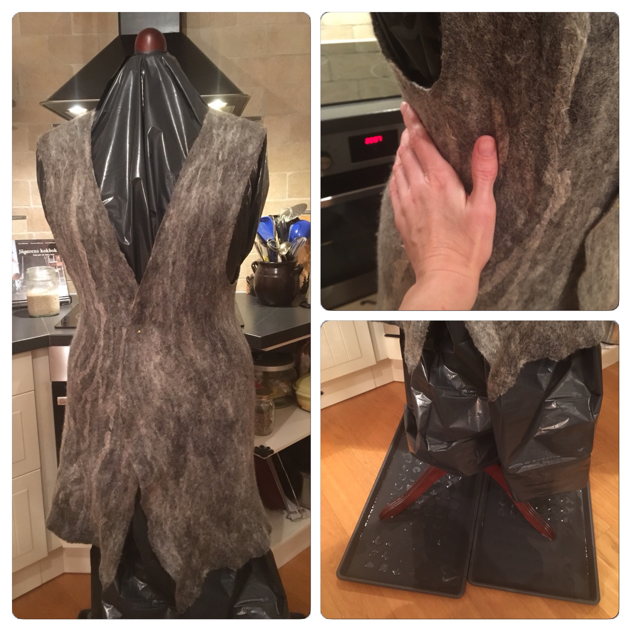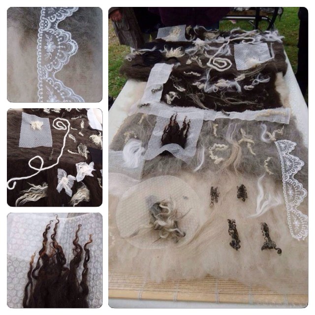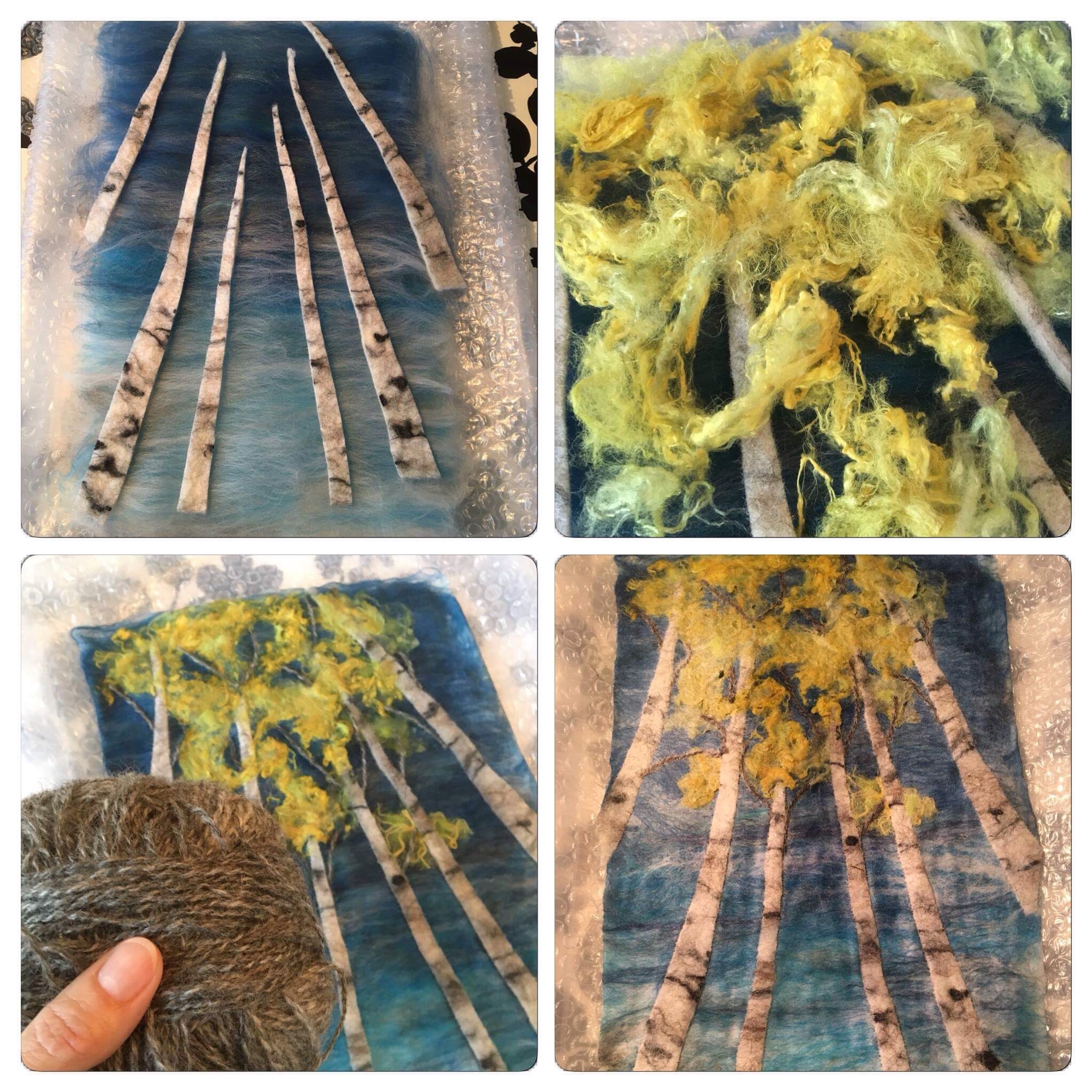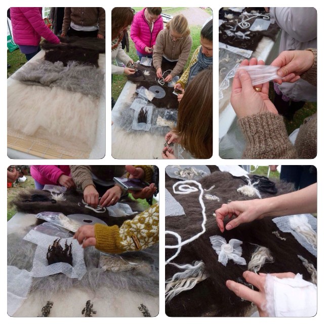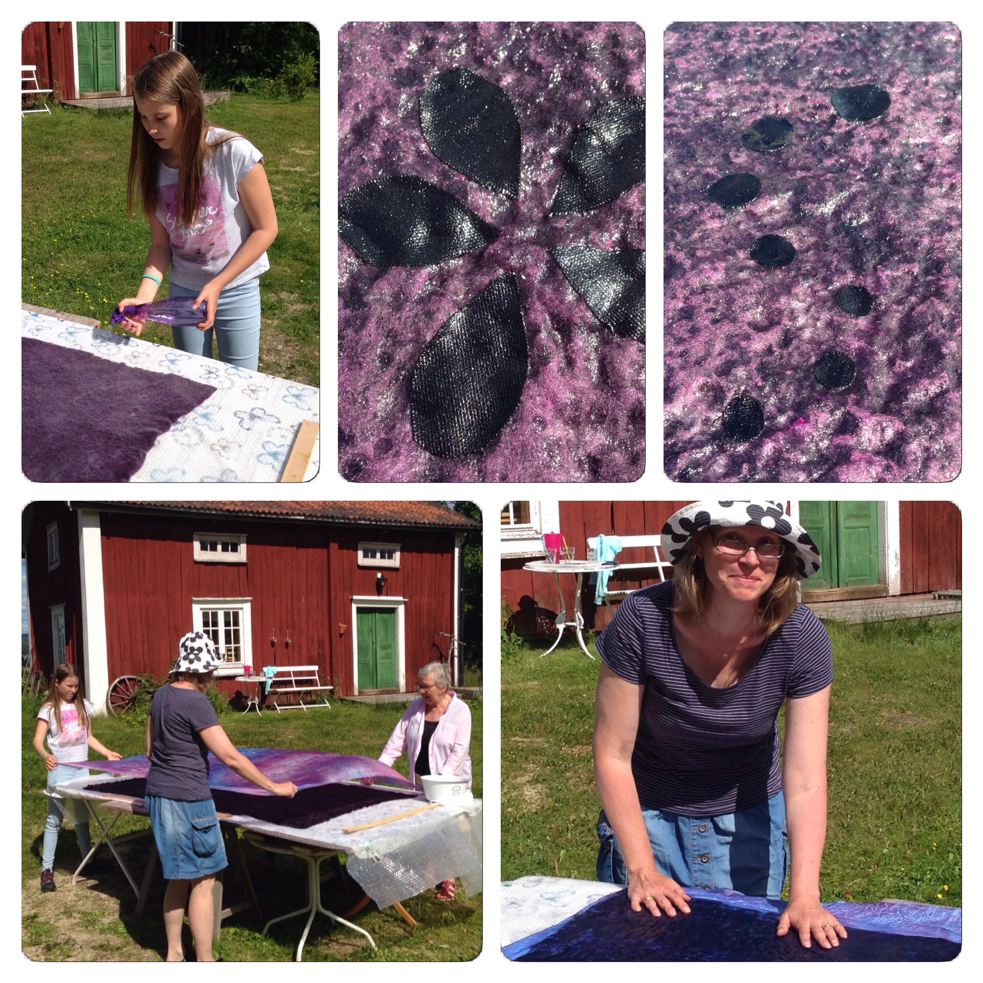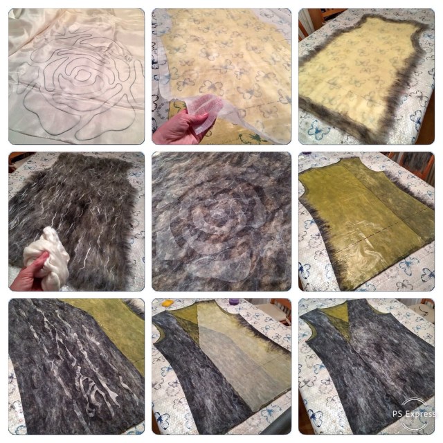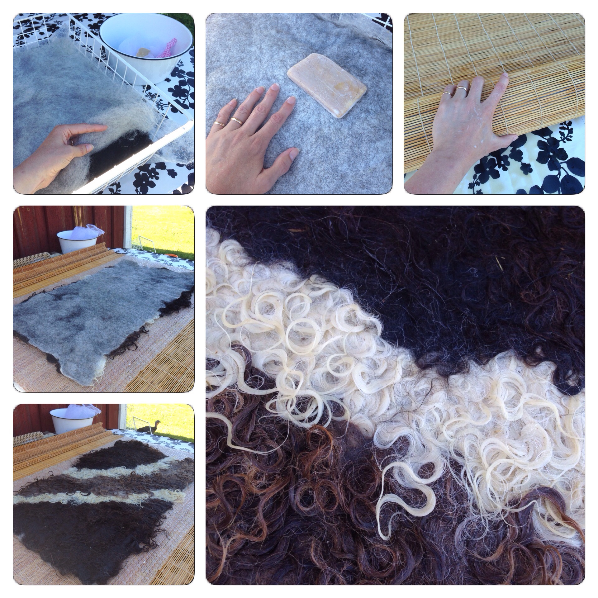 På en tredje la vi ut tjocka bomullssnören mellan ullen och sidentyget. Dessa snören fick ligga kvar nästan ända till slutet av tovningen innan jag drog ut dem.