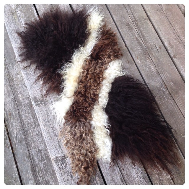 Nedan ser ni resultatet efter tovningen. Det är ju onekligen väldigt kul att leka med ull och sidentyger. Och snart känner jag mig kanske redo att försöka göra något större än en provlapp med den där mjuka merino-silke-nålfilten och sidentyget. 🙂