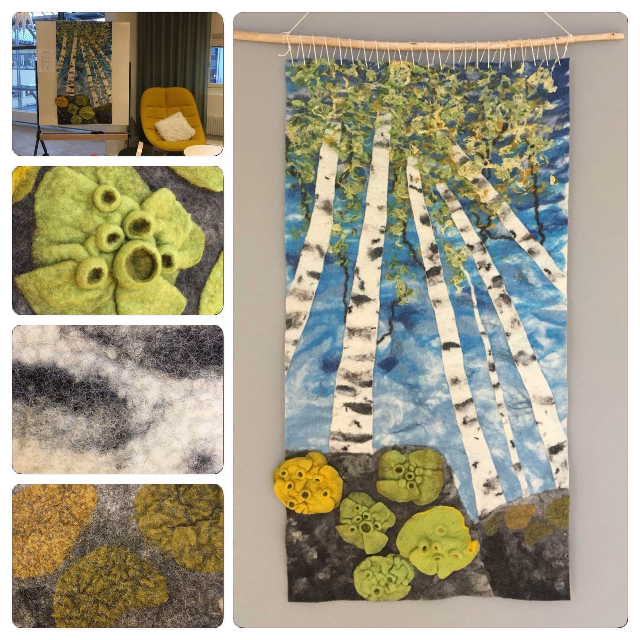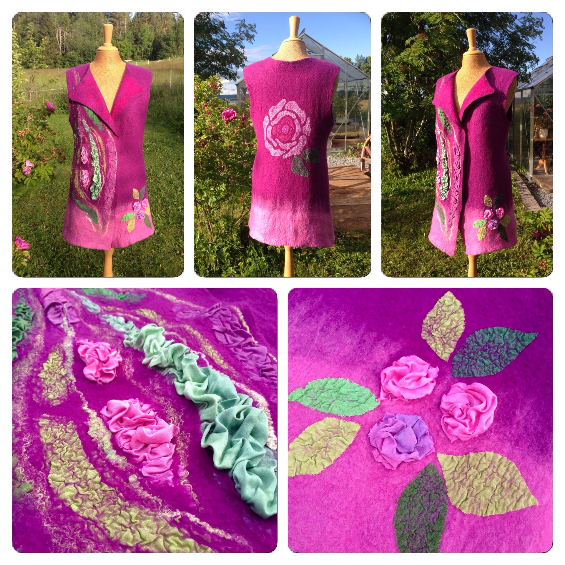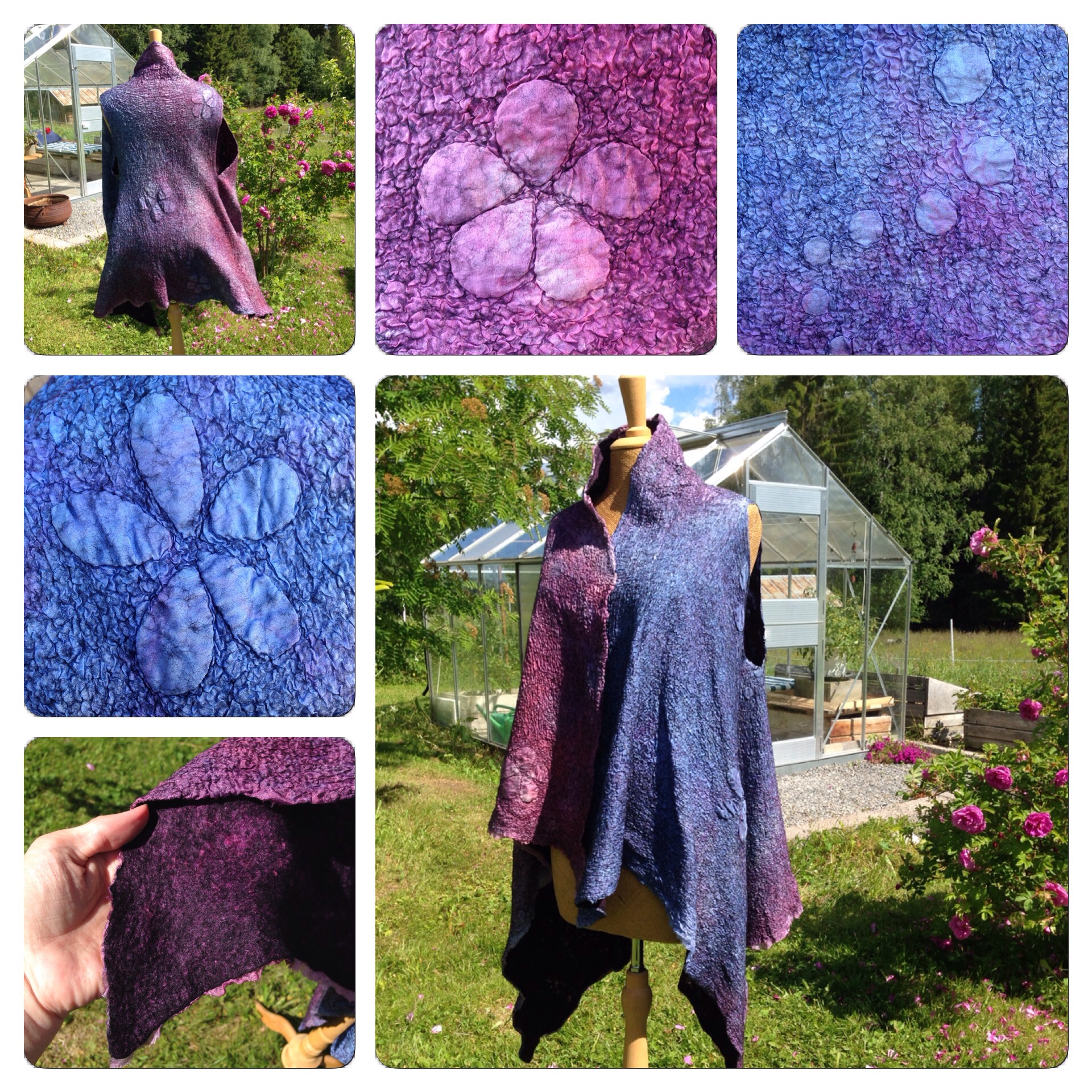 I think I have fallen in love with the merino and silk prefelt. It really is very soft with a nice shine from the silk, and I am fascinated by how you can felt something so delicate that still holds together. There was a small thin patch, but as it is behind the fabric it really doesn´t matter. However, to be on the safe side, it´s probably good to actually follow Christina´s advice and only stretch the prefelt lengthwise.
