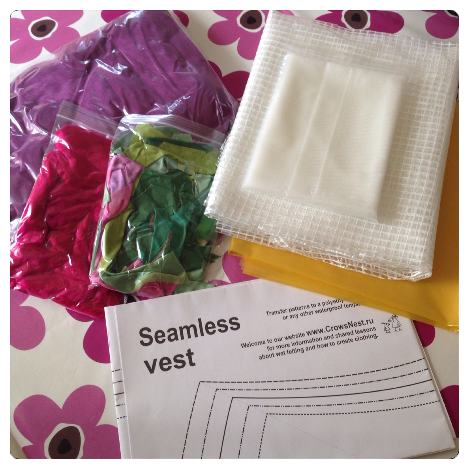NUNO-FELTING – SAMPLES OF PREFELT AND SILK FABRIC (English translation in italics in the text below)