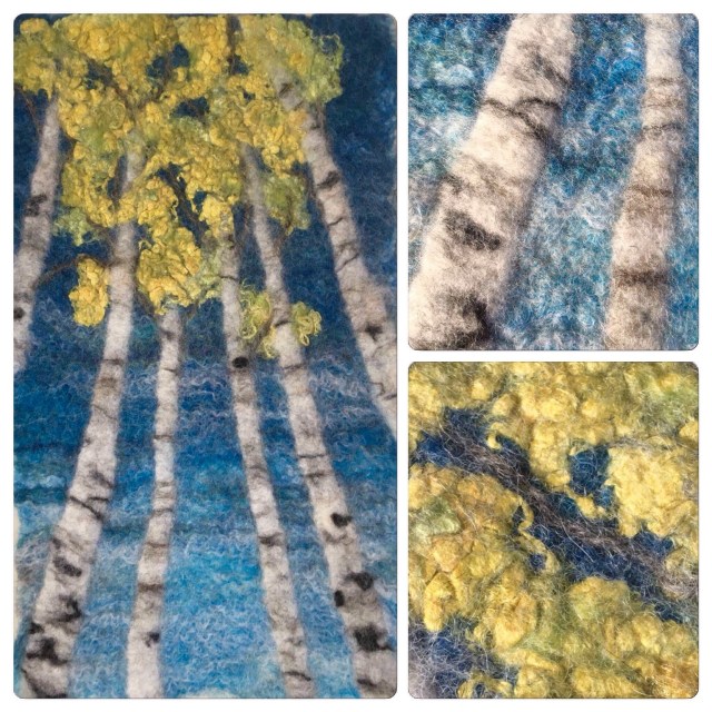 Below are the results after felting. It really is fun playing around with wool and silk fabric. And soon I may even feel ready to make something larger than a sample from that soft merino-silk prefelt and the silk fabric. 🙂