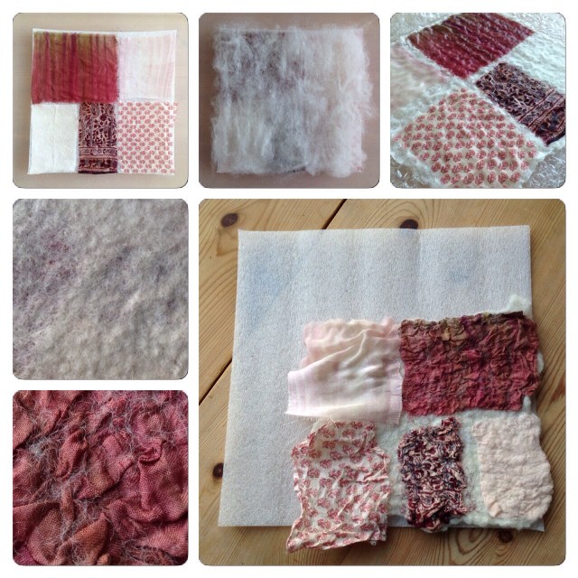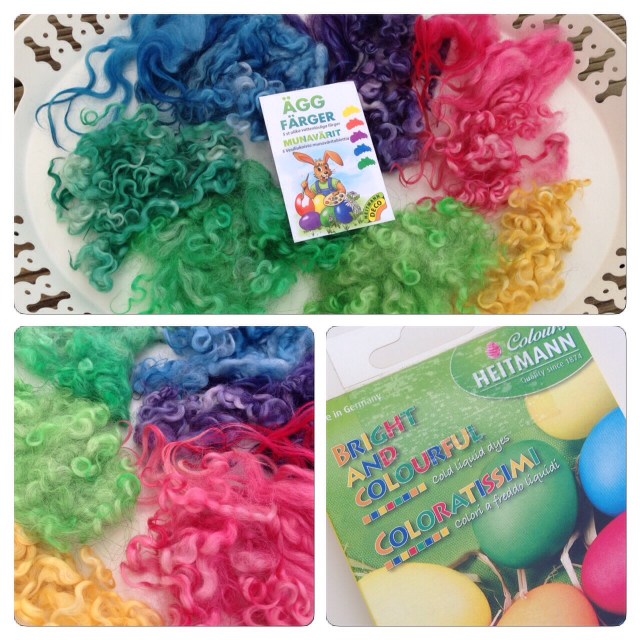 I admit it. Merino wool makes me a bit nervous. I am more used to felting with coarser wool from Swedish breeds, and compared to that, merino feels so very soft and delicate. I just don´t feel like I have the same control over all those fine fibers during the felting process. I find it harder to judge when they have felted and fulled enough, when I am standing there with a soft mass full of soap. I simply need more practice and, therefore, recently ordered some merino wool from World of Wool. They have a wide selection of all sorts of colors and blends, but also wool from other breeds of sheep and other types of fibers that can be fun to use in felting. My daughters also chose a blend of dyed merino each, one of which (the one with blue) included silk fibers. Incredibly beautiful and soft, and a real contrast to the natural colored wool I otherwise usually work with.