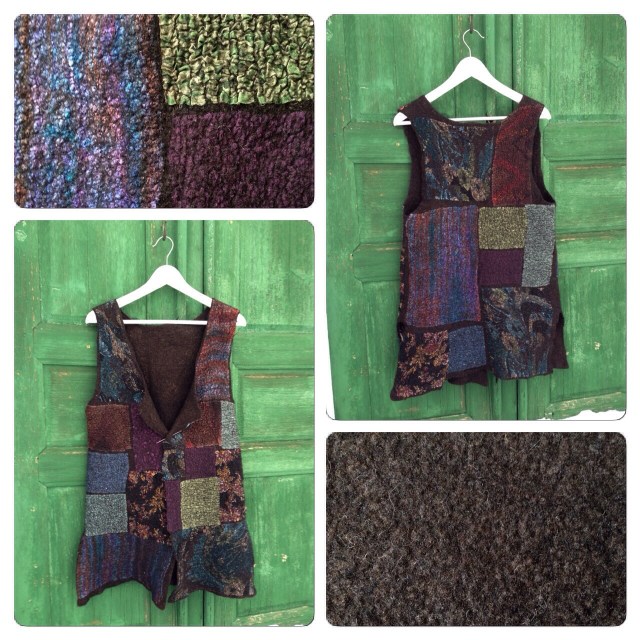 As such a large portion of the wool is laid in the same direction, the piece shrank a lot in length, but much less in width. The long scarf turned into a small wrap. But it is beautiful and the white fabric, that can be glimpsed in all that blue, looks a bit like wave ripples, or reflections, in the water. So much more fun than a simple, striped scarf.