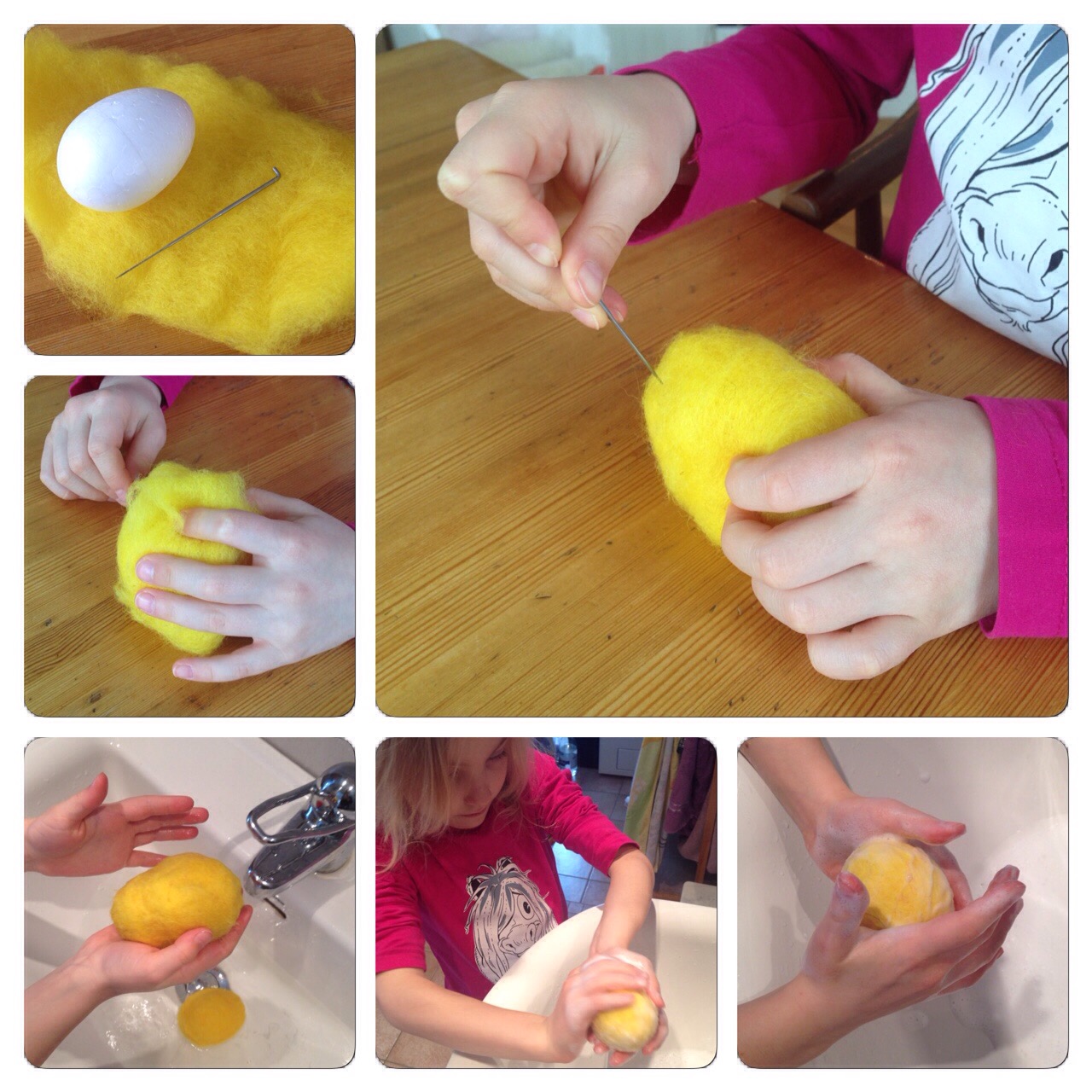 Jag lägger ofta rätt mycket tid på att planera och tänka igenom ett projekt innan jag börjar. Jag experimenterar en del, men inom vissa givna ”säkerhetsramar”. Att ge barnen fria händer blev en övning i att släppa kontrollen för min del. Och det gick ju att tova, även om ullen inte var utlagd enligt konstens alla regler, och det var merinoull. Ibland skulle jag nog må bra av att tänka lite mer som ett barn, släppa kontrollbehovet, sluta tänka på begränsningar och bara skapa som det faller mig in för stunden. Jag tror att jag har en del att lära mig av mina barn och jag inspireras av deras ohämmade kreativitet.